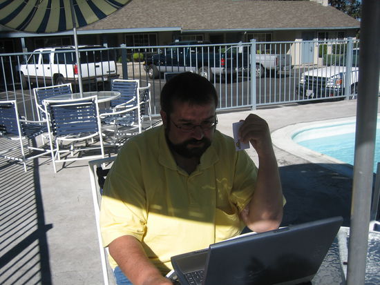 Nach dem obligatorischen "Continental Breakfast" in der Motellobby (diesmal bestand es aus Kaffee und einem abgepackten schneckennudelartigen süßen Teil) machten wir uns wieder daran, das Zimmer zu räumen und den Chevi mit dem Gepäck zu beladen. Ich hatte schon am Vortag vergeblich versucht, mich ins Internet einzuloggen. Vom Zimmer und von der Lobby hat es nicht funktioniert. Man gab mir den Tipp, dass die beste Verbindung im Hotelpool sein soll. So machte ich mich für einen letzten Versuch mit dem Laptop unter dem Arm auf den Weg zum Pool. Leider hat auch dort die Verbindung nicht geklappt.