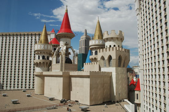Diesen Tag konnten wir etwas ruhiger angehen lassen. Es stand die Fahrt nach Las Vegas auf dem Programm. Von Hurricane aus waren es "nur" rund 220 km und etwa 3 Stunden Fahrtzeit. Zu früh wollten wir nicht in Las Vegas ankommen, weil das Einchecken in der Regel erst um 14:00 Uhr beginnt. Wir waren aber bereits um 12:00 Uhr in Vegas angelangt und entschieden uns spontan, im Excalibur nach einem Zimmer zu fragen. Monika hat uns wieder sicher durch Las Vegas gelotst. Und als wir das Auto beim Excalibur verließen, traf uns die Hitze mit voller Wucht. An die rund 40 Grad muss man sich erst gewöhnen.