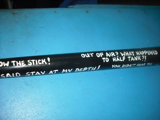 Leider beschlug meine Brille andauernt, was supernervig war und noch dazu hatte ich unheimliche Probleme den Druckausgleich zu machen. Normalerweise hab ich niemals Probleme aber bei diesem Tauchgang habe ich gewiss 10min gebraucht bis ich auf 20m unten war, weil es sooooo weh tat. Mir taten die anderen leid die auf mich warten mussten. Auch ansonsten war der Tauchgang nicht so prikelnd, dank zu der Maske die ich mehr am säubern war unter wasser anstatt die Fische anzuschauen. Dadurch wieder viel Luft verbraucht, aber Alice (DM dieses mal) regelte es super und gab mir ihr Safety-sausage und liess mich alleine hochsteigen, gab mir bloss ein Zeichen als mein Safetystop zu ende war und ging wieder runter zu den anderen die noch 10min weiter tauchten.
