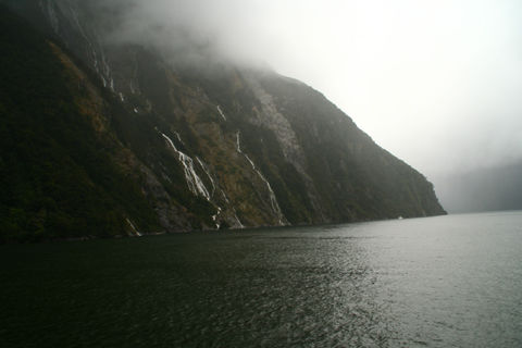 Auf dem Boot in Milford Sound war es erst nicht viel besser, regen regen regen und man bliebt lieber unter Deck als die 1000 Wasserfaelle zu begutachten.