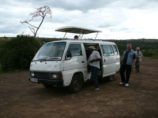 Zugegeben, der Park ist groß und die Wege sind spärlich ausgeschildert, die gute Josephine hätte aber gut daran getan, ihren Fahrern eine Fortbildung in Sachen Orientierung zu spendieren. Schon unser vormittäglicher Driver hatte den Giraffenpark nur mit gemeinschaftlicher Hilfe gefunden und unser Nationalpark-Chauffeur verfranzt sich ausgerechnet gegen Abend völlig im weitläufigen Gelände. Ein Ausfahrtsgate, das wir ansteuern, ist aufgrund des hüfthohen Grases offensichtlich schon seit Jahren geschlossen, ein Weg nicht mehr zu erkennen und ich sehe mich schon statt eines Tusker-Bieres bei kongolesischer Livemusik im bekannten Open-Air Lokal "Simmers" den Abend und die Nacht im Kleinbus inmitten hungriger Löwen verbringen.