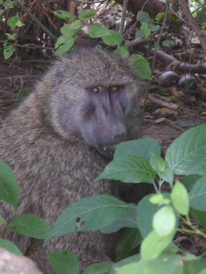 Am Nachmittag fahre ich mit ein paar anderen Touris in einem Minivan mit aufklappbarem Dach im Nairobi National Park umher. Den Reiz bezieht der Park dadurch, dass er sich vor der Skylinekulisse Nairobis am unmittelbaren Stadtrand erstreckt. Er ist nicht eingezäunt und trotz der nahen Millionenstadt sind dort sogar Löwen beheimatet. Die sehen wir nicht und auch sonst muss man sich die einzelnen Tiere richtig "erarbeiten". Sie sind nicht sehr zahlreich und nur in teils recht großer Entfernung zu sehen, Strauße, Antilopen, Giraffen, immerhin ein Krokodil, ein großes Rudel Paviane, Wasserbüffel.