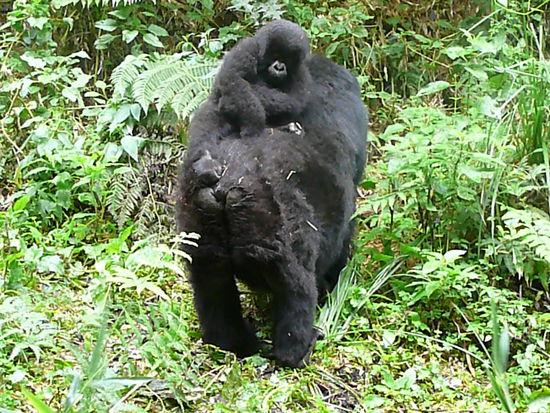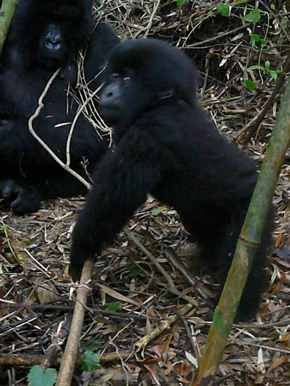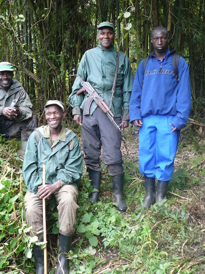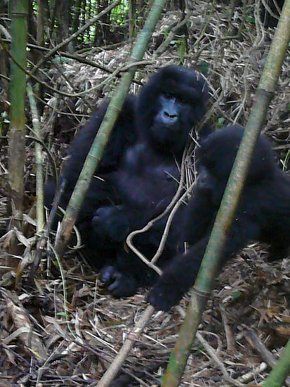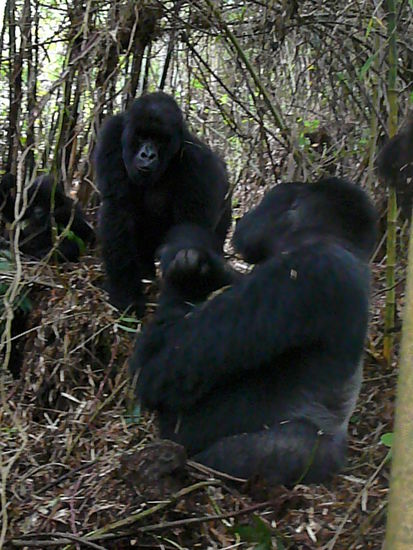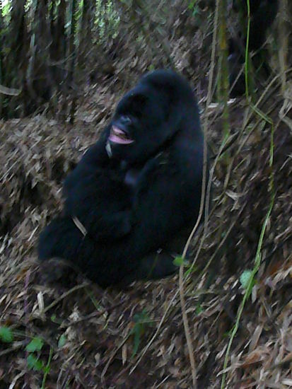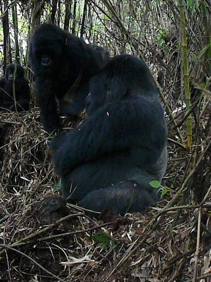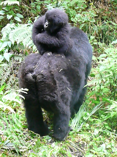 Dann sind sie im Gebüsch verschwunden und wir machen uns auf den Heimweg, der nun bergab viel schneller zu bewältigen ist. Nach kaum einer halben Stunde sind wir wieder auf offenem Feld, steigen dann in die bereit stehenden Fahrzeuge und verabschieden uns voneinander. Einige der Amis sind richtige Gorilla-Liebhaber und haben einen solchen Gorilla-Track schon mehrmals unternommen, dabei verschiedene Gruppen besucht. Ich glaube, für mich wird es ein einmaliges Erlebnis bleiben. Das Gefühl, wenn man zum ersten Mal einen Berggorilla sieht oder dem gewaltigen Silverback in die Augen schaut ist unvergesslich und die Intensität wohl nicht wiederholbar.