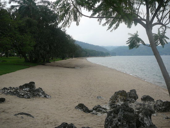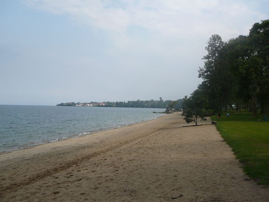 Ich weiß nicht, ob es in Ruanda einen Wettbewerb "Unser Ort soll schöner werden" gibt. Wenn ja dann hätte Gisenyi allergrößte Chancen, den ersten Platz zu machen. Überall wird gekehrt und in den Parks am Seeufer sind Horden von vorwiegend jungen Frauen und Mädchen damit beschäftigt, die Anlagen von Unkraut und anderem Unrat zu befreien. Am frühen Morgen sind dort, wo einige große Felsen in den See ragen, junge Leute eifrig am Lesen und Schreiben, wahrscheinlich Schüler und Studenten, die sich auf den heutigen Unterricht vorbereiten. Ansonsten bin ich beim Strand- und Parkspaziergang weitgehend allein und werde neugierig beäugt von den Arbeiterinnen. Ich muss schmunzeln bei dem Gedanken, mich hier bis auf die Badehose auszuziehen und mich in die Fluten zu stürzen. Das würde einen Menschenauflauf geben ! Allerdings sollte man beim Baden vorsichtig sein. Giftige Dämpfe steigen an vielen Stellen aus dem vulkanischen Boden auf und halten sich bei Windstille dicht über der Wasseroberfläche. Mein Reiseführer hat einen Ratschlag parat: dort baden wo die Einheimischen ins Wasser gehen. Guter Tipp, ich sehe nur niemanden, der hier badet.