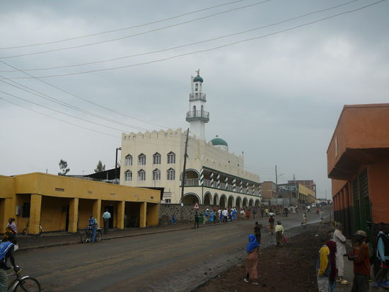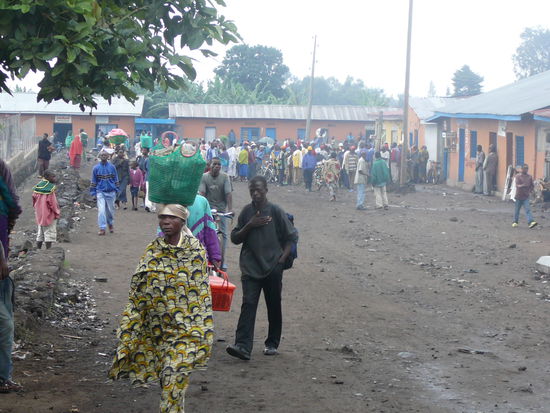 Im weiter oben gelegenen Ortskern herrscht reges Treiben auf den Straßen und Märkten. Ich sehe eine Ansammlung von bunt gekleideten Frauen neben einem Areal mit hohen rötlichen Lehmmauern und frage einen der Umstehenden: "Ist da Markt ?" - "Nein, Besuchstag im Gefängnis". Wie auf Bestellung erscheinen im Gänsemarsch in rosa Schlafanzügen gekleidete Männer, von einigen Bewaffneten bewacht. Strafgefangene verrichten auch außerhalb der Gefängnismauern Arbeiten, helfen beim Straßen- oder Häuserbau. Viele sitzen noch seit den Zeiten des Völkermordes ein. Mittlerweile belebt man die alte Dorfgerichtsbarkeit wieder, Gacaca genannt. Die Gefangenen müssen sich der Dorfgemeinschaft stellen, über ihre Taten berichten, Zuschauer des Verfahrens, das meist unter freiem Himmel abgehalten wird, können sich als Zeugen melden und am Ende wird entschieden, ob der Angeklagte reumütig genug ist und die Schwere der Tat es erlaubt, ihn wieder in die Freiheit zu entlassen.