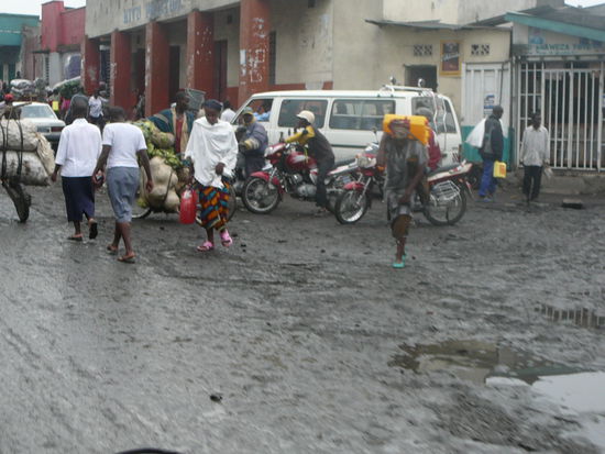 An der Grenzstation sehe ich einige Weiße, Mitarbeiter von NGOs, allerdings in der entgegen gesetzten Richtung. Auf kongolesischer Seite werde ich zum Bürovorsteher gebeten, der freundlich fragt, was ich denn vorhätte. Ich antworte in meinem besten Französisch, das ich mir mal die Stadt ansehen möchte und er meint, kein Problem, wünscht mir einen schönen Aufenthalt und bittet mich, bei der Mama im Vorzimmer die Formalitäten zu erledigen. Die kassiert die 30 Dollar, haut mir einen Stempel in den Pass und stellt auch noch eine Art Passierschein aus, für 8 Tage.