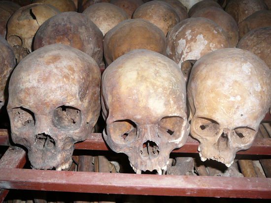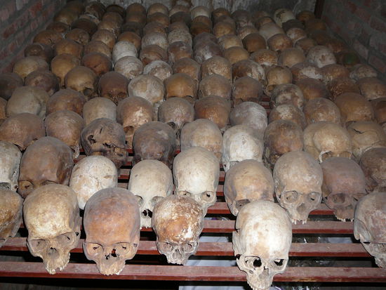 Muss ich auch gar nicht. Hinter der Kirche liegen unterirdische, begehbare Kammern, wo viele Schädel und Knochen der Opfer zu sehen sind.