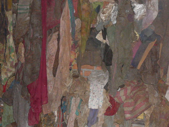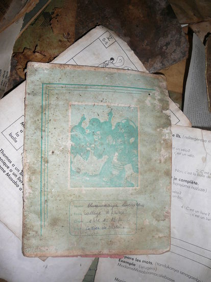 Die Schuhe sind aufgetürmt, es sind nicht sehr viele, die meisten Menschen waren wohl barfuss. Auch alle anderen Gegenstände sind zusammengetragen, etwas Kochgeschirr, Schmuck, ein Polaroid-Bild von einer Familie, die es nicht mehr gibt, ein Schulheft eines kleinen Mädchens. Das Mädchen mit einem dieser langen unaussprechlichen ruandischen Namen hat mit ihrer schönsten Handschrift ihren Namen und ihre Klasse, die Erste, auf das Heft geschrieben. Sie hat wohl gedacht, sie könne ihr erworbenes Wissen noch einmal anwenden. Sie konnte es nicht. Ihr kurzes Leben endete in dieser Kirche.