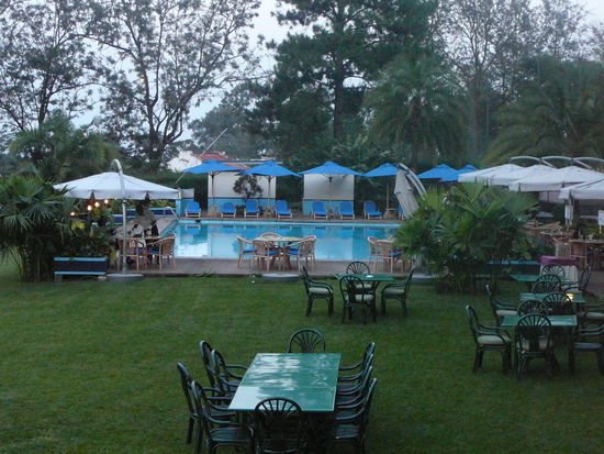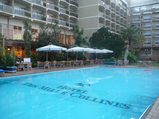 Am Nachmittag wieder Kontrastprogramm. Das Bier gestern im Mille Collines war billig und gut, die Kartoffelchips auch. Also wieder hin zur Happy Hour. Dieses Mal mache ich ein paar Aufnahmen vom Pool. Sie sind auf dem Fotochip nun unmittelbar hinter den Schädeln der Kirchen gespeichert. Wie gesagt, Kontrastprogramm. Ruanda heute.