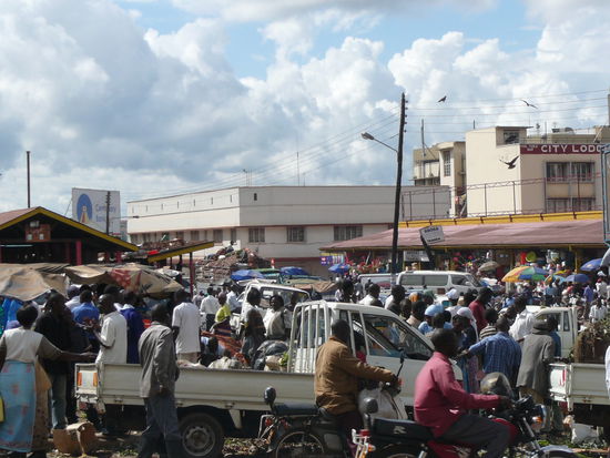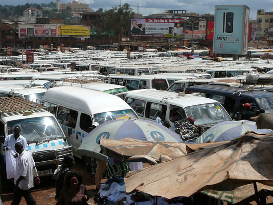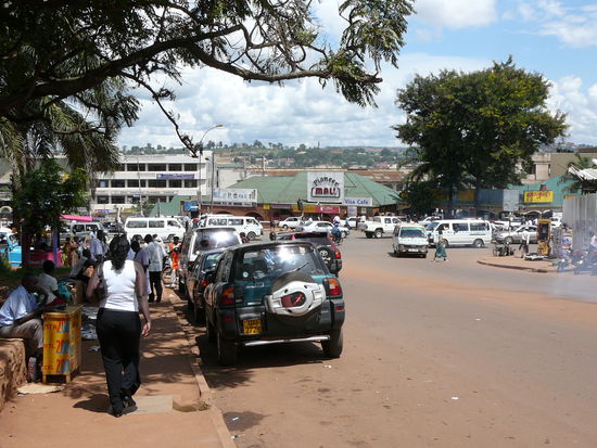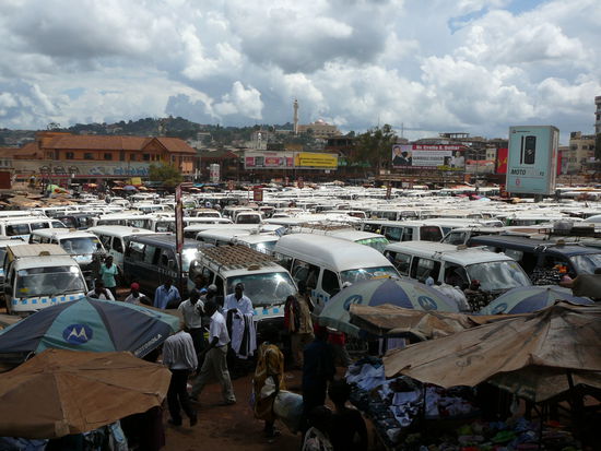 Nahe dran, rund um den Nakasero und Owino Markt, herrscht das typisch afrikanische Gewusel, voller Menschen, die alles anbieten und kaufen, was man sich nur vorstellen kann. Und voller Autos, meist Kleinbusse, die den öffentlichen Transport übernehmen. In Kenia werden sie Matatus genannt, hier Taxis. Die Taxis, wie wir sie kennen, heißen "spezial hire". Etwas verwirrend. Im Old Taxi Park, einem großen Areal in der Altstadt, stehen diese Busse dicht an dicht, unablässig drängen weitere auf das Gelände und man fragt sich erstens, wie denn die Leute das richtige Gefährt finden, das sie dort hinbringt wo sie hin wollen und zweitens, wie sich dieses gigantische Knäuel aus Blech jemals entwirren kann.