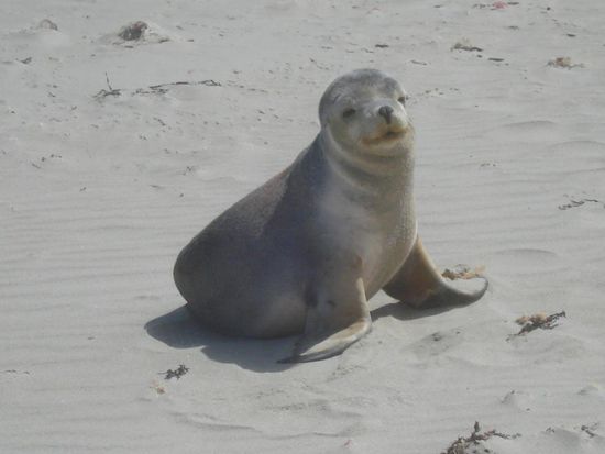 Dann gings zurueck zur Farm um unsere Sachen zu holen und BBQ als lunch zu haben. Die 4(!) Jungs wurden von Scott dazu verdonnert das Essen vorzubereiten, da sie sonst nie was gemacht hatten. Dann gings also um 3 Ur am letzten Tag zu unserem letzten Stop: Seal Bay, wo wir, dem Namen zu entnehen, Seals gesehen haben (zu Deutsch: Robbe) Und wir hatten das Glueck, dass die Weibchen gerade Junge bekommen hatten, das passiert nur alles 18 Monate hier, da das Wasser nicht so reichhaltig ist, dann also auch die Muttermilch net so gut ist, und die Babies hier in KI ca 10 Monate gesaeugt werden. Die waren wirklich soooo suess!!!! Die kleienen kamen sogar auf uns zu, aber: anfassen verboten! Das sind immer noch wilde Tiere!!! Haben ein paar Teenagerrobben kaempfen gesehen. Echt toll!!!