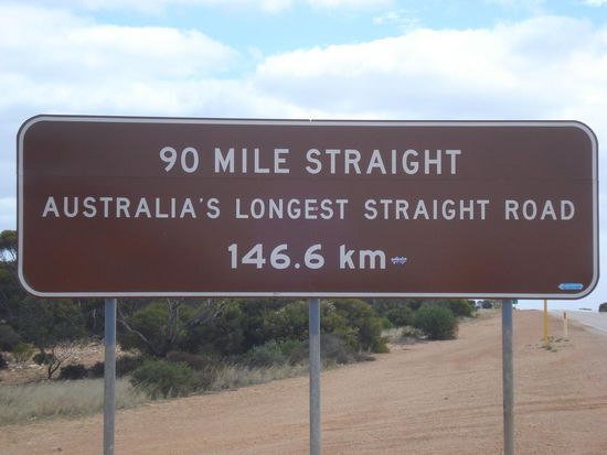 Sind dann also weiter, auf ins Land der Spinifex Poeple, die Nullabor Plain (lateinisch fuer 'kein Baum'). Vorher noch kurz an nem Strand vorbei, wo es so aehnlich aussah wie im Coorong National Park, mit Sandduenen und Salzseen kurz vorm Ozean und dann auf die lange 2000 km Strecke auf der eigentlich Nichts zu sehen ist aber das halt gerde den Reiz ausmacht (uebrigens bei 35Grad und ohne Klimaanlage). Die meißten Australier wuerden diese Stracke nie fahren, weil man ja auch fliegen koennte aber einen haben wir dann doch getroffen, aufm Motorrad. Den haben wir dann auch an jeder Tankstelle wieder getroffen, weil dort ja immer jeder tanken musste. Der hat uns dann noch ein paar Tipps gegeben. Mussten an der Grenze natuerlich mal wieder unser ganzes Obst und Gemuese abgeben, was wir es vergessen hatten, und unseren geliebten Leatherwood Honig. (((