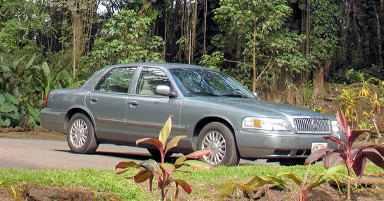 Der nächste Schreck kam bei der Autovermietung.... ich hatte ein recht großes Auto gemietet, damit wir unsere ganzes Gepäck unterbringen konnten. Wie jedes zweite mal habe ich einen kostenlosen Upgrade bekommen, aber nicht auf eins der großen 4-Radantriebs-Monster wie erhofft, sondern auf einen amerikanischen Straßenkreuzer namens Mercury Grand Marquis. Lang, breit, schwer, V8, 320 PS... verbrauchte so ungefähr 80 Liter auf 100 km. War zwar erst ein Jahr alt, sah aber aus wie 10. Wenn wir nicht so müde gewesen wären und nicht noch 3 Stunden fahren hätten müssen, hätte ich ihn umgetauscht. Habe ich aber zum Glück nicht. Das Auto war nämlich klasse. Hat zwar etwas (tatsächlich nur etwas) mehr Sprit geschluckt, wie normal aber hatte Traktionskontrolle und allen anderen denkbaren Schnick-Schnack. Wie ihr später seht, war die Traktionskontrolle Gold wert. Und die Ledersitze und der Platz waren auch nicht schlecht...