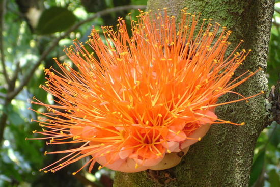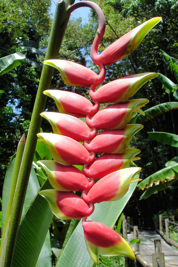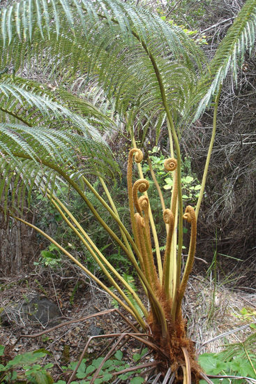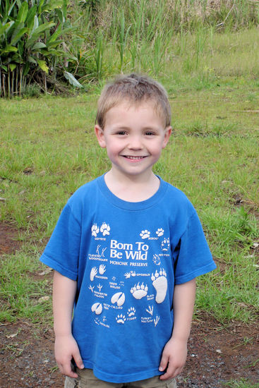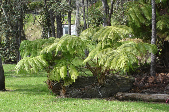 Am besten haben uns aber eigentlich die baumhohen Farne gefallen und die wie Unkraut sprießenden Büsche, die blütenübersät in weiß, blau oder violett überall blühten. Die Farn-Stengel (sagt man so?) sind anfangs in der Mitte der Pflanze aufgerollt wie eine Faschingströte, entrollen sich dann im Laufe der Zeit und treiben riesige Farnwedel (so sagt man!) aus. Dann waren wir noch im berühmten botanischen Regenwald-Garten von Hilo und haben riesige Blüten bewundert, bevor wir das erste mal einen Abstecher ans Meer gemacht hatten. Das das Wetter so schön war, waren die Wellen nicht hoch, nur so knapp 1.5 m. Da wir keine Stranschuhe dabei hatten, mussten wir hinterher Cedrics Schuhe die halbe Nacht auf dem Ofen im Ferienhaus trocknen. Ohne den Ofen wären die bis heute noch nicht trocken. Ohne Schuhe gings dann noch superlecker (italienisch) essen und um 9 ins Bett (ja, eine halbe Stunde mehr haben wir uns schon gegeben.