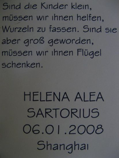 Und der Familie Sartorius fuer ihre Worte zur Geburt ihrer Tochter Helena und damit ihrem Beitrag zu unseren Abschlussgedanken: