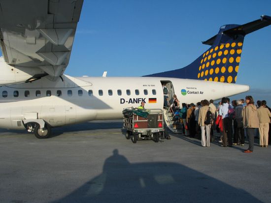 Wir flogen mit einer kleinen Propellermaschine der Lufthansa von Düsseldorf nach Guernsey, Channel Islands. Nach einer Woche Aufenthalt in einer Wohnung im "Sausmarez Manor" in St. Martin setzten wir mit der Condor Ferry nach Jersey über, wo wir im "Panama" in St. Helier ein Apartment gebucht hatten. Von Jersey flogen wir wieder mit Lufthansa zurück nach Düsseldorf.