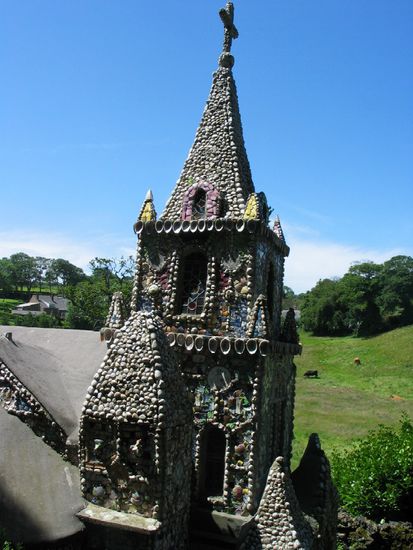 Das imposanteste Bauwerk Guernseys ist wohl die "Little Chaple", die wir am nächsten Tag besuchten. Der Bruder Deodat des Ordens de La Salle begann 1914 mit dem Bau der wahrscheinlich kleinsten Kapelle der Welt nur aus Scherben, Muscheln und Keramikbruchstücken. Als Vorbild diente ihm die "Grotte und Basilica von Lourdes". Diese kleine Kapelle liegt mitten in einer herrlichen Landschaft.