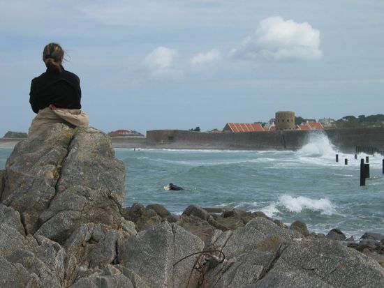 Der Maler Auguste Renoir hat 1883 einige Wochen auf Guernsey gewohnt und soll jeden Tag diese Bucht aufgesucht haben. Er hat sie in einigen Bildern verewigt. Man kann es ihm nicht verdenken. Auch uns hat es begeistert, das Meer zu beobachten, diese besonderen Felsformationen und das silberne Glitzern auf dem Wasser zu bestaunen.