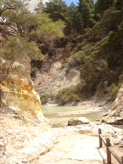 Heute hatten wir wohl das Gefühl alles nachholen zu müssen, was wir die letzten Tage nicht gemacht hatten, denn auf dem Weg nach Rotorua konnten wir nicht an dem Thermalpark Wai-O-Tapu Wonderland vorbeifahren...und so kamen wir vor allem in den Genuss von angenehmem Schwefelgeruch...