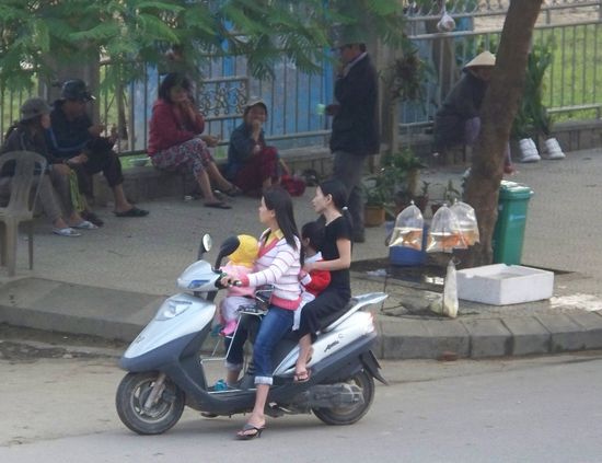 Waehrend wir einen grossen Familienwagen besitzen verfuegen die meisten vietnamesischen Familien nur ueber einen Roller... selbst dort haben 4-5 Personen Platz.