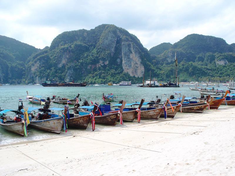 Nach unserem schoenen 3-Tagestrip in die Halong Bucht verbrachten wir noch 2 gemuetliche Tage in Hanoi bevor unser Flieger anschliessend in Richtung Bangkok abhebte. Wir waren uns nicht ganz sicher, wo wir in Thailand unsere letzten 10 Tage verbringen wollten. Es stand jedoch fest, dass wir zum Schluss ein paar relaxte Tage am Strand (bzw. beim Tauchen...) verbringen wollten. Ob es die West- oder Ostkueste Suedthailands werden sollte entschied schlussendlich das Wetter. So stiegen wir noch am gleichen Abend nach unserer Ankunft in Bangkok in den Nachtbus (die thailaendischen Nachtbusse haben einen besseren Ruf als die vietnamesischen...) nach Krabi und nahmen am naechsten Morgen von dort aus die Faehre nach Ko Phi Phi an der Westkueste. Bereits in meinem letzten Thailandurlaub verbrachte ich eine traumhafte Woche auf Ko Phi Phi und machte damals meinen Tauchschein. Daher freute ich mich doppelt auf unsere letzten Tage und war gespannt, wie sich die Insel zu damals veraendert hatte.