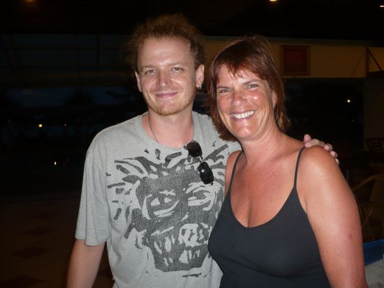 Wie schon an vielen anderen Orten ist auch hier "wireless-Empfang" möglich. Ich zeige Jaew die Bilder mit den Patenkindern. Sie schaut mir interessiert über die Schulter.