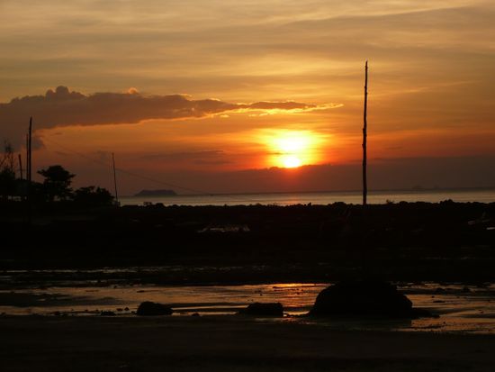 Auf der Rückfahrt, fällt uns der fast kitschig-orangefarbene Himmel auf. Wir beeilen uns, im Lanta Sea House an den Strand zu kommen.