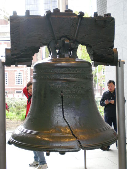 Die Glocke ist nicht besonders spektakulaer.Das einzige "besondere"ist ,dass sie evtl. an dem Tag,an dem die Unabhaengigkeitserklaerung unterschrieben wurde,gelaeutet hat und den Sklavereiabschaffungsbewegung als Freiheitssymbol gedient hat.Der "crack"(=Spalt) entstand bei der Reparatur des wirklichen Risses.