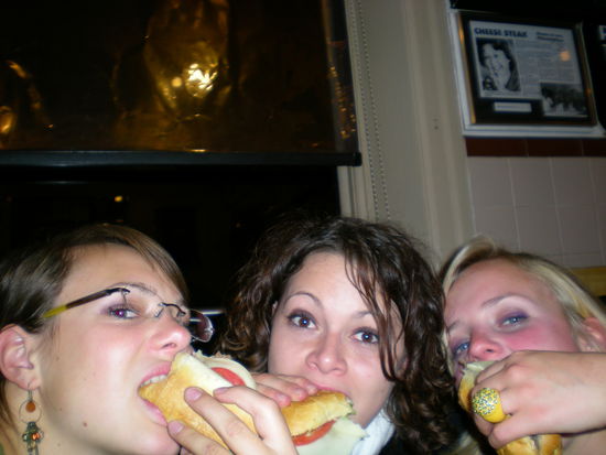 Um eine Grundlage zu schaffen,ging es in Philadelphianischer Manier "Cheesesteak" essen:eine Art Hot Dog Broetchen mit Hackfleisch,Salat,Tomaten und Kaese.Schmeckt wie ein widerliches Cheeseburger beim Maecci...aber gehoert dazu ,wenn man in Philly ist!
