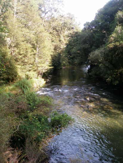 An dem ersten Tag hatten wir jedoch alle das gleiche Ziel. Die Wanderung war insgesamt 16km lang und war wunderschoen gewesen. Es ging durch den Wald in einem Tal entlang wo ein breiter Fluss durchfloss. Da in Neuseeland mittlerweile der Herbst eingetroffen ist, verlieren die Baeume gerade ihre Blaetter, was die ganze Landschaft noch viel schoener macht. Ausserdem ist das Geraeusch von den Blaettern beim wandern sehr angenehm. An dem ersten Tag der Wanderung haben wir Gluecklichen noch blaue Enten zu Gesicht bekommen...insgesammt 7! Die blauen Enten sind vom Aussterben bedroht und daher sehr selten. Ausserdem haben wir noch einen kleinen Wasserfall betrachten koennen, sowohl einen kleinen Canyon, der aussah wie aus einem Maerchen. An unserem Ziel (der Central Hut) angekommen, haben viele schon ihre Zelte aufgebaut gehabt. Meine Gruppe hatte sich in der Huette einquartiert, die sehr gemuetlich war. Am Abend haben wir dann noch Karten im Kerzenlicht gespielt...war richtig schoen.