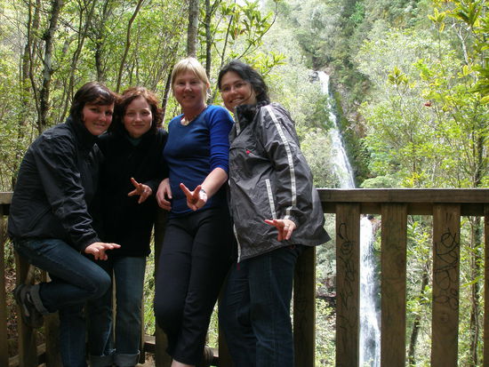 Das Duschen ging am naechsten Morgen sehr schnell. Um ganz genau zu sein bei 4 Frauen 12 Minuten lang - da man fuer einen Dollar nur 3 Minuten lang warmes Wasser hatte. Anschliessend ging es zum Fruehstuecken nach Whangamata, wo wir noch einer weitern Band aus dem Nachbarscafe zuhoeren konnten und uns dabei gemuetlich unterhalten konnten. Mit gesaettigtem Magen ging es wieder zurueck zum Zeltplatz wo wir einen langen Spaziergang zum nahegelegenen Wasserfall machten....ein bisschen Bewegung tut immer gut.