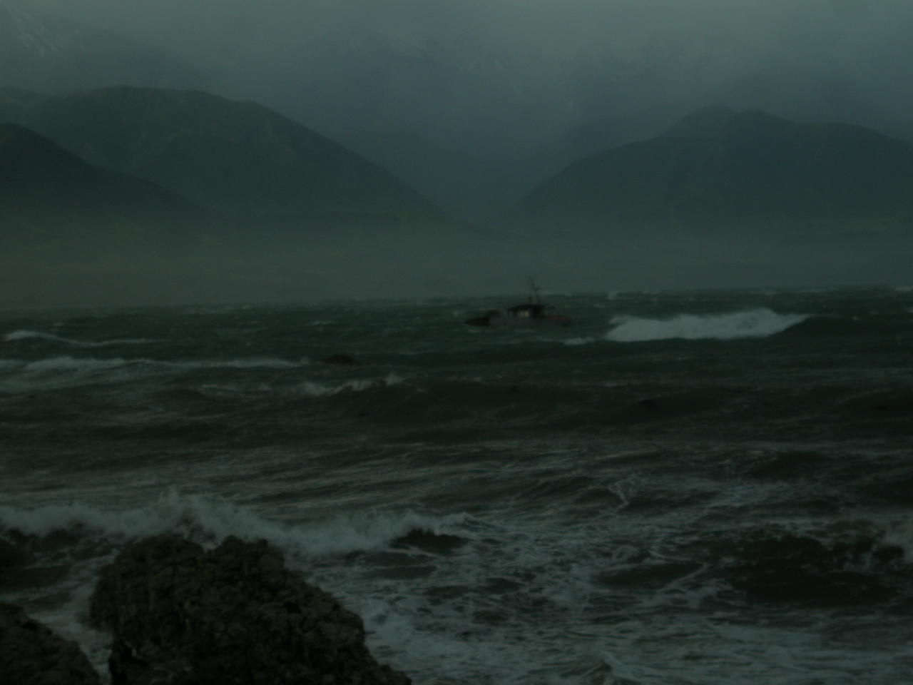 Als wir am morgen von Hanmer Springs nach Kaikoura losfahren wollten, war es so heiss geworden, das wir kurze Sachen anziehen konnten. Als wir jedoch keine 2 Stunden spaeter in Kaikoura ankamen, war auf einmal schlechtes Wetter mit ziemlich viel Wind!
