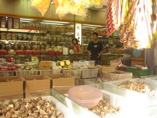 die Apotheken hierzulande kann man nicht mit unseren vergleichen. Hier gibts tatsaechlich getrocknete Haiflossen uns Fischgretten. Sehr lecker...
