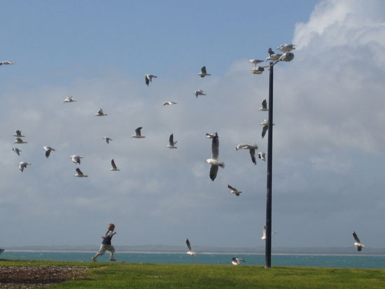 Nach einem kurzem Aufenthalt in Mount Gambier, wo wir einen Blick auf den See im Krater eines Vulkans geworfen haben, sind wir dann schon 14:30 in Robe angekommen, wo wir gleich nett begruesst wurden
