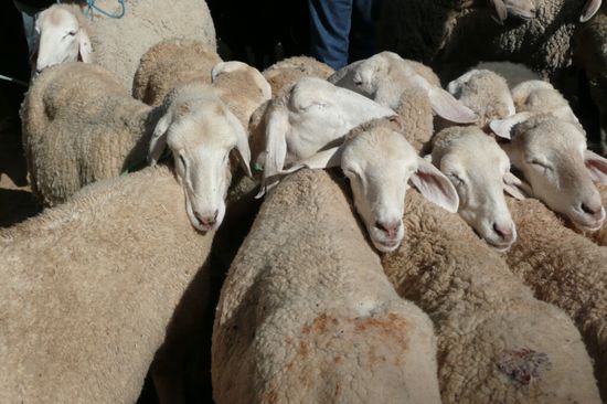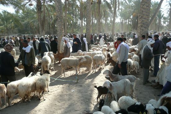 Zunächst haben wir uns den noch nahezu touristisch unverfälschten Donnerstagsmarkt in Douz angeschaut. Da wird mit allem gehandelt, was das Berberherz begehrt: Gemüse, Obst, Gewürze, Kleidung (gebraucht und auch neu), Eisenwaren, Tiere, ...