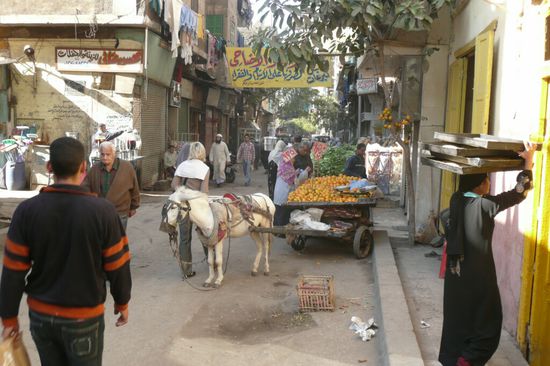Zum Mittagessen haben wir uns in die Suqs von Kairo gewagt und mit Essen "aus der Hand" das orientalische Treiben beobachtet: Esel, Schafe, Hühner, ... Mitten in der Grossstadt; vielfältige Düfte, Gerüche, Gestank. Geschäftigkeit neben viel Muse an allen Ecken.