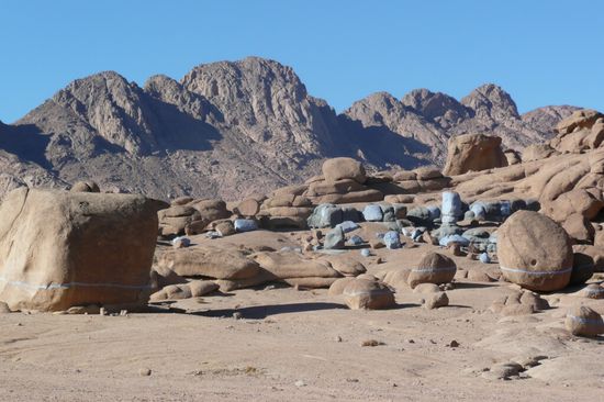 Die restliche Fahrt durch den Sinai gestaltete sich weiterhin sehr abwechslungsreich, so dass wir öfter anhielten und mit kurzen Wanderungen die Landschaft genossen und ganz nebenbei noch vorpharaonische (steinzeitliche) "Nuwamis" - Grab- oder Schutzbauten, die Gelehrten streiten sich - besichtigten.