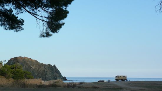 Nach 7 Tagen Ruhepause ging es weiter. Das Wetter hatte sich mit einem Hoch stabilisiert und somit war die Weiterfahrt der zerklüfteten Küste entlang kurzweilig und abwechslungsreich. Die zugebauten Küstenabschnitte um Alanya und Antalya reizten uns nicht besonders und so machten wir unseren nächsten Stopp im Olympos Nationalpark. Von der Küstenstrasse fuhren wir ein steiles Tal hinunter in die Bucht von Cirali, wo uns ein herrlicher Strand erwartete, den wir Jahreszeiten bedingt ganz alleine für uns hatten.
