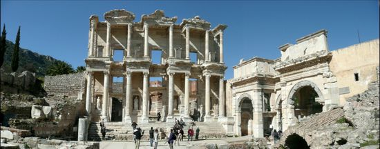 Am nächsten Tag erwartete uns der Höhepunkt unserer kurzen Türkeireise: Ephesus. Da wir ganz in der Nähe am Strand von Pamucak übernachten konnten, waren wir schon früh - vor den ersten Bussen - am Ausgrabungsgelände und konnten deshalb fast ungestört durch die Anlage schlendern und den fast freien Blick auf die Sehenswürdigkeiten - Marmorstrasse, Theater, die gut restaurierte Fassade der Celsus-Bibliothek, die Hanghäuser, die Agora geniessen. Das war wirklich alles sehenswert und das relativ teure Eintrittgeld allemal wert.
