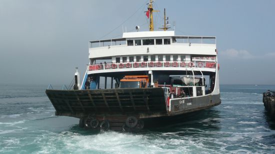 Fast unglaublich aber wahr: Bei der Überfahrt war es neblig, Sicht max. 50m. Die Fahrt dauert etwa 20 Minuten. Da kam auch das Ufer in Sicht, begleitet von einer sehr lauten Sirene von Land. Daraufhin ging die Fähre auf volle Kraft zurück und stoppte kurz vor dem Ufer! Der Kapitän hatte die Hafeneinfahrt verpasst und das trotz Radar. Das Schiff - eine RoRo-Fähre - ist dann rückwärts in die daneben liegende Hafeneinfahrt eingefahren, und wir mussten ebenfalls rückwärts von Bord, damit alle sehen konnten, was für einen Mist der Kapitän verzapft hatte.