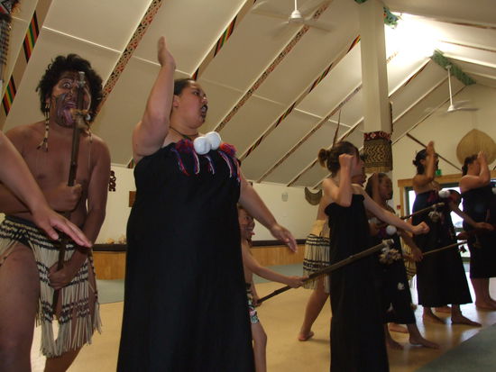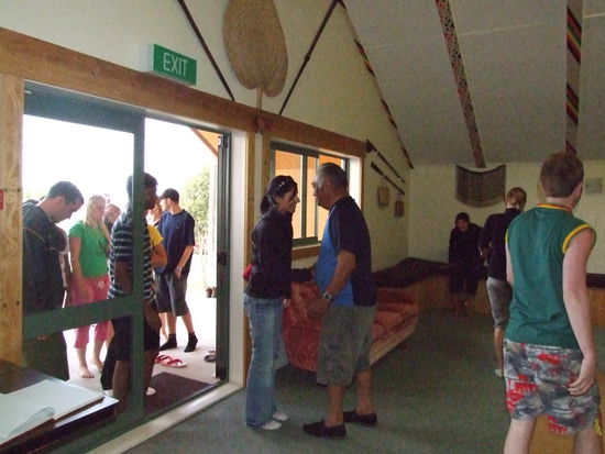 Zum Nachmittag sind wir dann in Maketu, einem kleinen Maoridorf angekommen, wo Uncle Boy jeden einzelnen von uns mit einer typischen Maori-Begruessung Willkommen hiess.