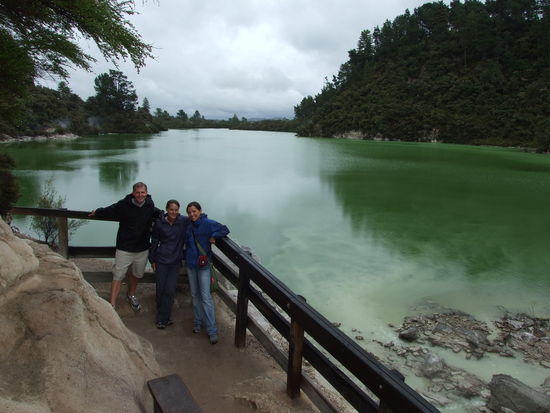 Dank dieser "zuverlaessigen" Eruption haben wir dann ein englisches Paerchen wiedergetroffen, mit denen wir zusammen auf den Cookinseln waren. Und so hatten wir fuer unser "thermisches Wunderland" gleich nette Begleitung!