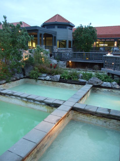 Abends sind wir in Rotorua dann noch ins Polynesian Spa, um uns ein wenig in den Hot Pools zu entspannen... nach diesem verregneten Tag eine willkommene Moeglichkeit sich aufzuwaermen!!