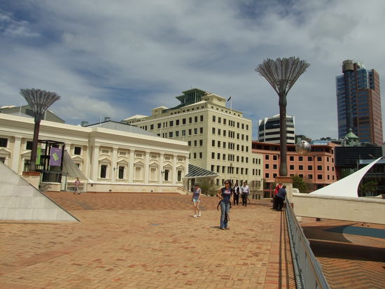 Als erstes sind wir ins Te Papa, Wellingtons Nationalmuseum, von dem wir bereits von vielen Seiten gehoert hatten, dass es ein ausserordentlich tolles Museum sein soll. Also sind wir eine ganze Weile darin herumgelaufen und haben etwas ueber Neuseelands geographischer Entstehung, seiner Unterwasserwelt und Maori-Kultur gelernt. Einen Fake-Bungy jump konnten wir leider nicht machen, da wir dazu festes Schuhwerk benoetigten! Schade!