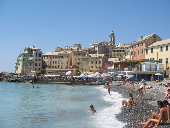 Dieser bestand aus faustgroßen Steinen, ich nehme an das war wohl mit ein Grund dafür, warum wir die einzigen Ausländer am Strand waren. Wenn ein deutscher oder britischer Mittelmeer-Urlauber schon die Reise gen Süden auf sich nimmt, dann will er sich typischerweise auch auf einem Sandstrand von der schweren Anfahrt erholen. Um uns herum machten nur Italiener ihre Ferien.