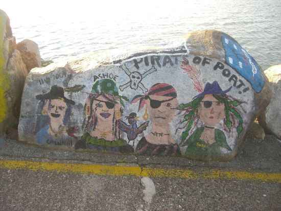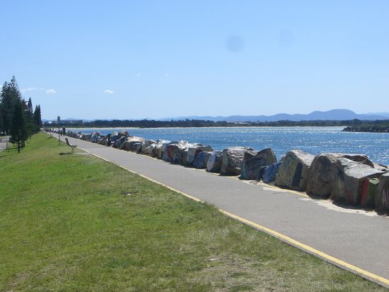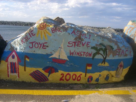 Viele Felsensteine neben dem Meer auf einem Weg, wo sich seit ca. 10 Jahren Menschen verewigen, die einfach nur mal in Port Macquarie waren, die eine Widmung an verstorbene Menschen machen oder einfach nur aus Spass was darauf zeichnen.