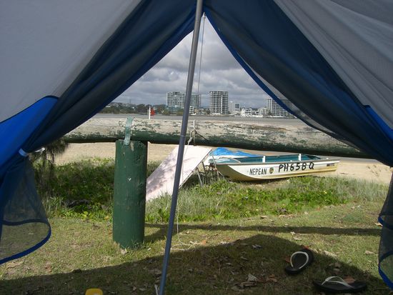 Am naechsten Tag ging's weiter ins mit dem Bus 5 min entfernte Maroochydore. Der Zeltplatz war groesser, das Meer noch naeher