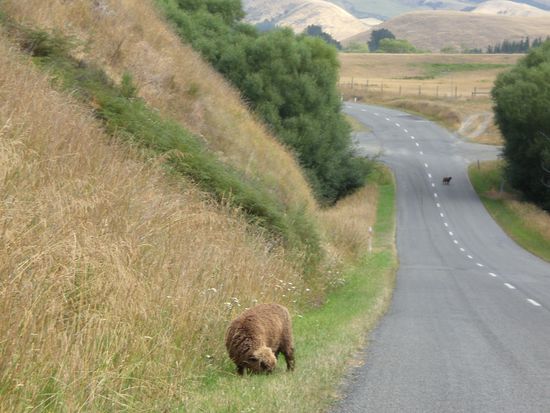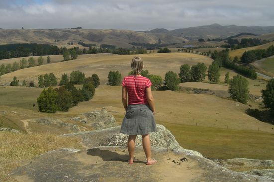 Weiter geht es nach Christchurch. Mit dem schoenen Auto fahren wir wieder durch verschiedene Landschaften und halten immer mal wieder an schoenen Stellen!!! Vorbei an einer reizvollen Felskueste, dann landeinwaerts und der Weg fuehrt durchs Farmland.