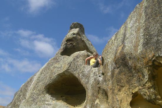Beim Vorbeifahren sehen wir auf einem Berg eine bizarre Felsenformation...die muessen wir unbedingt aus der Naehe sehen!! Doch leider ist alles von einem Zaun umgeben. Ach egal... das soll uns nicht aufhalten!
