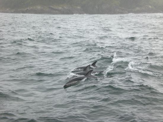 Spaeter treffen wir auf noch eine Herde die sich wesentlich in der Groesse zu der anderen Herde unterscheidet. Leider sind die nicht so spielerisch und schwimmen weiter. Doch unser Bootsfuehrer gibt nicht auf und faehrt hinterher. Das nennen wir mal Engagement!!!
